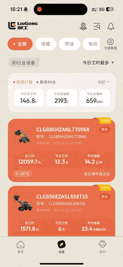 與傳統(tǒng)設(shè)備管理工具不同,柳工智能管家2.0打破品牌壁壘,兼容柳工及其他主流廠家設(shè)備,客戶通過手機(jī)即可實(shí)時(shí)查看設(shè)備定位、工作小時(shí)、油耗數(shù)據(jù)等核心信息,實(shí)現(xiàn)車隊(duì)集中管理。