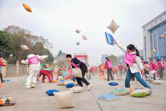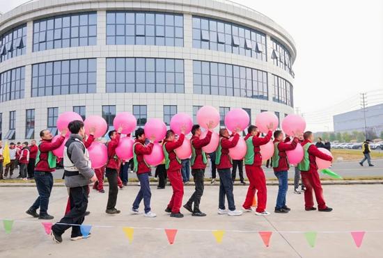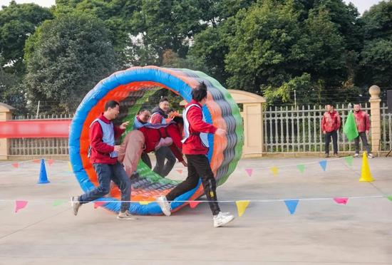 上午9點,領(lǐng)導(dǎo)致辭后,賽場迅速升溫。蜈蚣競走時,統(tǒng)一口令下步伐整齊,隊友間互幫互助,“人形蜈蚣” 靈活穿梭;動感五環(huán)賽道上,隊員們默契扶持,即便失衡加時也相互鼓勁、穩(wěn)步推進;枕頭大戰(zhàn)上,彩色枕芯紛飛,歡笑聲此起彼伏,大家卸下壓力盡情釋放;拔河賽場更是高潮迭起,隊員們緊握粗繩、嘶吼發(fā)力,紅綢帶來回拉鋸,啦啦隊吶喊聲震耳欲聾,全員為團隊榮譽拼盡全力。