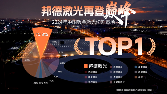 在中國(guó)光學(xué)學(xué)會(huì)、中國(guó)激光雜志社與中國(guó)科學(xué)院武漢文獻(xiàn)情報(bào)中心聯(lián)合發(fā)布的《2025中國(guó)激光產(chǎn)業(yè)發(fā)展報(bào)告(詳版)》中,顯示中國(guó)激光切割設(shè)備市場(chǎng)呈現(xiàn)出明顯的頭部集聚趨勢(shì),邦德激光更是以10.3%的市場(chǎng)份額,連續(xù)兩年在中國(guó)市場(chǎng)位居行業(yè)第一,蟬聯(lián)“雙冠”。