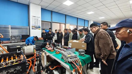 電池、電機(jī)供應(yīng)商技術(shù)專家現(xiàn)場(chǎng)授課,指導(dǎo)學(xué)員開(kāi)展動(dòng)力電池開(kāi)包檢測(cè)、電控系統(tǒng)調(diào)試與電機(jī)拆解等深度實(shí)操訓(xùn)練。通過(guò)親手操作關(guān)鍵部件,學(xué)員深入理解電池?zé)峁芾?、BMS智能監(jiān)控等核心技術(shù)要點(diǎn),夯實(shí)維?;A(chǔ)。