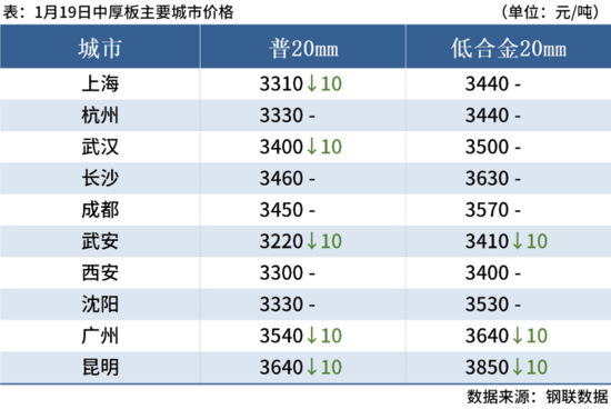 中厚板1月1日,全國24個主要城市20mm普板均價3379元/噸,較上一交易日下跌3元/噸。目前多數(shù)中板現(xiàn)貨市場報價持穩(wěn),成交主要集中在下午,上午詢價客戶較少且議價較多,午后成交偏差貿易商小幅讓價出貨。多地反應今日出貨偏差,情緒不佳。資源方面,現(xiàn)階段普中板及錳板的排產量相對較小,但各地區(qū)鎖價及新增資源也少量增加。綜合來看,預計20日全國中厚板價格窄幅下跌