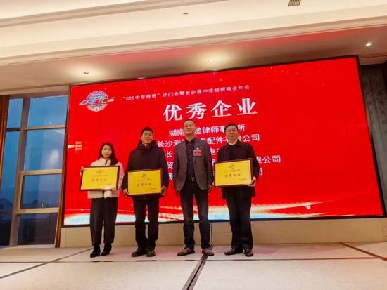 長(zhǎng)沙縣工商聯(lián)副主席楊浩先生為會(huì)長(zhǎng)單位、執(zhí)行會(huì)長(zhǎng)單位、監(jiān)事長(zhǎng)單位授牌