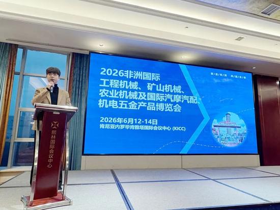 湖南力量之都國(guó)際展覽有限公司運(yùn)營(yíng)總監(jiān)付子豪進(jìn)行《非洲展資源全域推介》,詳解 2026 非洲國(guó)際工程機(jī)械相關(guān)博覽會(huì)的核心價(jià)值與參展權(quán)益,同時(shí)介紹了參展報(bào)名通道與相關(guān)扶持政策,為企業(yè)搭建了 以展拓市 的重要橋梁,助力企業(yè)借勢(shì)展會(huì)平臺(tái)快速切入非洲市場(chǎng)。