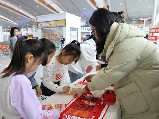 賀州站內(nèi),旅客在親手制作生肖剪紙、魚(yú)龍彩燈的過(guò)程中,留存獨(dú)屬自己的年味。