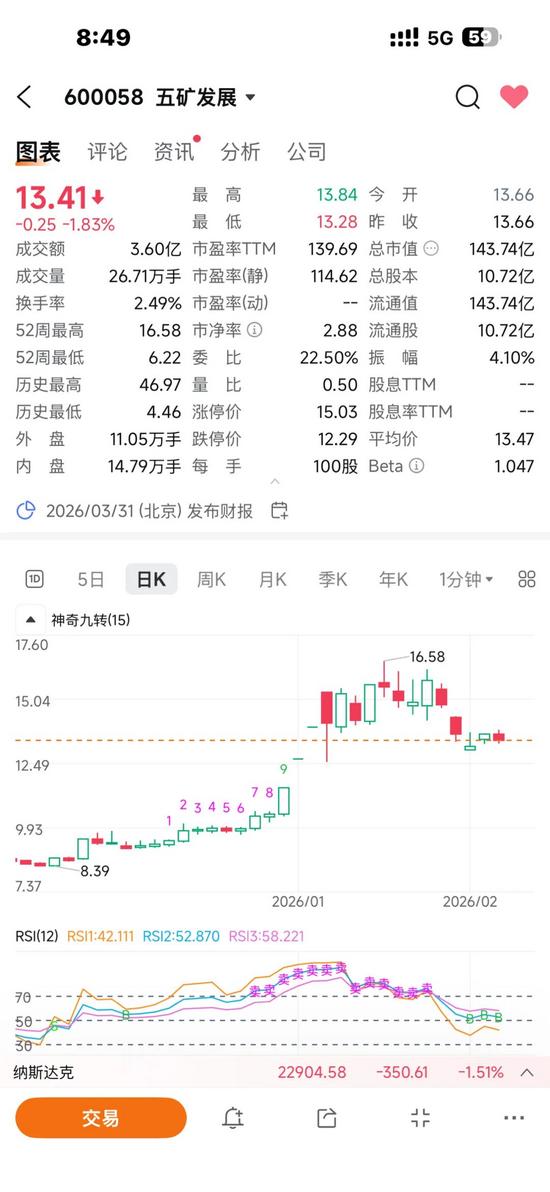 ? 短期波動:復(fù)牌暴漲后進入震蕩整理,2月4日跌1.83%,總市值143.74億元,換手率2.49%,資金分歧加大但趨勢未破。? 估值對比:當(dāng)前PE(TTM)139.11倍,仍處貿(mào)易股估值體系;重組完成后切換至鐵礦采選(行業(yè)PE15-25倍),存在50%以上修復(fù)空間,合理市值中樞約600-700億元,對應(yīng)股價56-65元(樂觀800-900億元)。? 風(fēng)險與催化:風(fēng)險為重組審批、鐵礦價格波動、產(chǎn)能釋放不及預(yù)期;催化為審批通過、礦價上漲、產(chǎn)能落地,將驅(qū)動二次估值上行。五、結(jié)論五礦發(fā)展通過“置出低毛利貿(mào)易+注入42.73億噸鐵礦資產(chǎn)”,從貿(mào)易商轉(zhuǎn)型為A股鐵礦資源龍頭,資源儲量、產(chǎn)能、盈利能力均支撐“中國鐵礦第一股”定位。復(fù)牌后股價暴漲是價值重估的合理反應(yīng),當(dāng)前處于震蕩整固期,待重組落地與業(yè)績兌現(xiàn),估值與股價仍有較大上行空間。