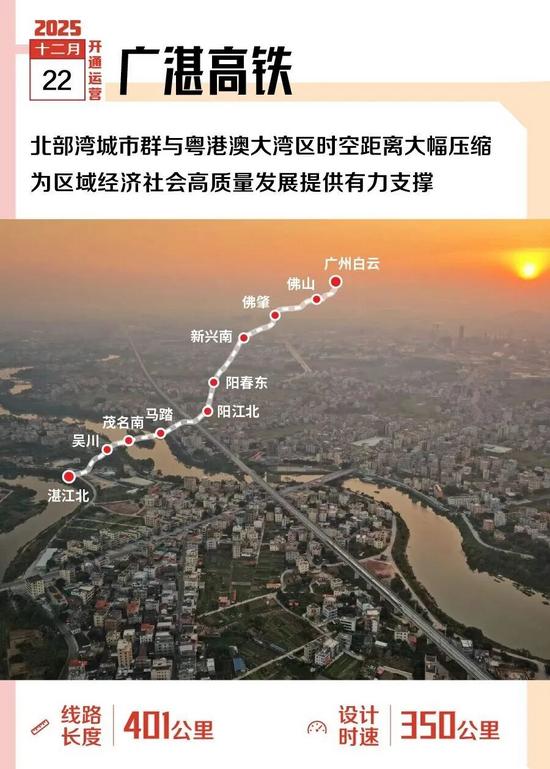 2025年12月22日,廣湛高鐵開通運(yùn)營(yíng),廣州至湛江中心城區(qū)的列車最快旅行時(shí)間大幅縮短,云浮、陽江、茂名等沿線城市被納入粵港澳大灣區(qū)“1.5小時(shí)交通圈”。