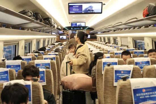 “高鐵環(huán)境舒適,工作人員服務(wù)熱情,心情都變得愉快了。”帶娃返鄉(xiāng)過年的旅客李先生談及高鐵,言語間充滿贊許。