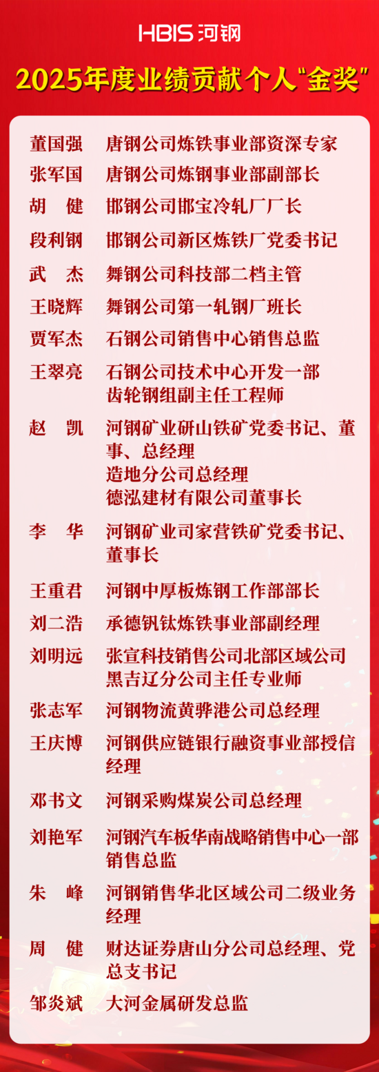 河鋼集團(tuán)黨委對(duì)在2025年度工作中作出突出貢獻(xiàn)的集體和個(gè)人予以表彰
