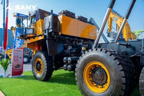 作為集團(tuán)旗下礦山裝備的重要力量,三一重裝攜 SKT130S混動(dòng)礦卡、寬體車SKT105S 及 鉸接車SAT40C 強(qiáng)勢(shì)登場(chǎng)。展臺(tái)前人頭攢動(dòng),來(lái)自沙特及周邊地區(qū)的礦山業(yè)主、承建商代表長(zhǎng)時(shí)間駐足交流,對(duì)SKT130S混動(dòng)礦卡表現(xiàn)出濃厚興趣與高度認(rèn)可。