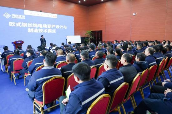 強技賦能,提質(zhì)增效。2月11日,《歐式鋼絲繩電動葫蘆設(shè)計與制造技術(shù)要點》專題培訓在公司智能產(chǎn)業(yè)園如期舉行。本次培訓由公司技術(shù)專家趙定元授課。