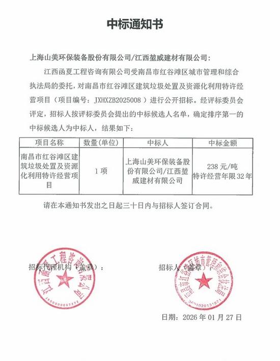1月22日,上海山美環(huán)保裝備股份有限公司聯(lián)合江西堃威建材有限公司成功中標江西省南昌市紅谷灘區(qū)建筑固廢處置及資源化利用特許經(jīng)營項目,經(jīng)營期限達32年。此次中標不僅是市場對上海山美股份綜合實力的高度認可,更標志著公司實現(xiàn)了從成套設(shè)備供應(yīng)商,到整體解決方案提供商,再到城市固廢處置項目一體化運營服務(wù)商的戰(zhàn)略跨越。作為中國固廢資源化行業(yè)發(fā)展的見證者與積極參與者,山美此次里程碑式的突破,也為企業(yè)持續(xù)成長與行業(yè)創(chuàng)新注入了新的動力。