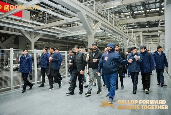在產(chǎn)線參觀環(huán)節(jié),客戶分批深入起重機(jī)械園中小噸位裝配車間,實(shí)地觀摩了從底盤裝配到整車下線的完整流程。講解員重點(diǎn)介紹了型布局下滿負(fù)荷18分鐘下線一臺(tái)起重機(jī)的柔性化產(chǎn)線,以及空中輸送系統(tǒng)與AGV機(jī)器人協(xié)同構(gòu)建的地空高效物流體系。在大尺寸輪胎黑燈裝配單元、智能支腿捅裝專機(jī)及轉(zhuǎn)臺(tái)自動(dòng)定扭單元等工位前,客戶長(zhǎng)時(shí)間駐足,詳細(xì)了解機(jī)械臂自動(dòng)裝配、智擰云系統(tǒng)實(shí)時(shí)追溯等創(chuàng)新工藝。整條產(chǎn)線集成158項(xiàng)核心專利、60余項(xiàng)行業(yè)首創(chuàng)技術(shù),其智能化水平與制造精度給海外客戶留下深刻印象,也為下午的技術(shù)交流與簽約合作奠定了直觀認(rèn)知基礎(chǔ)。