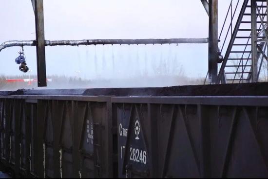 電煤裝車完畢后,抑塵溶液通過噴灑設(shè)備均勻覆蓋在每節(jié)車廂的煤炭表面,有效遏制揚塵污染。站在一旁的不連溝煤炭裝車站負責(zé)人劉仰打趣道:“煤炭敷上了‘面膜’,綠色運輸更有保障?!?/span>