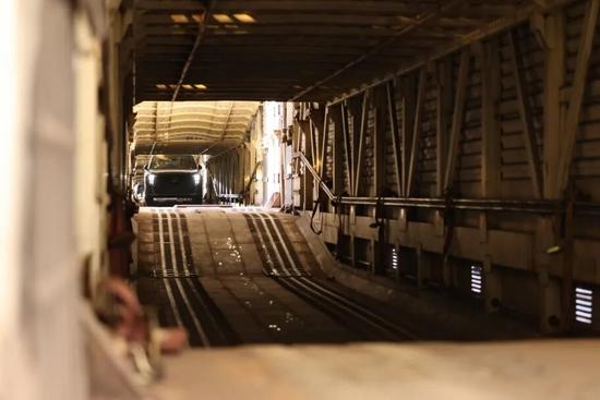 在貨二道端式站臺上,一趟JSQ型商品汽車專用運輸班列正靜靜等候。工作人員精準操控著汽車,掛擋、轉(zhuǎn)向一氣呵成,汽車沿著貫通式通道緩緩入廂。