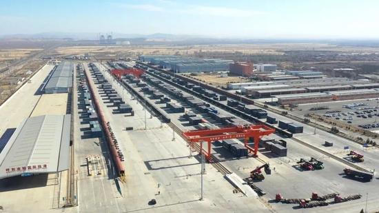 天剛放亮,內(nèi)蒙古國貿(mào)集團有限公司業(yè)務(wù)負責(zé)人閆勝就已經(jīng)站在了園區(qū)貨二道旁,“這是年前的最后一趟班列,我得來看看?!彼脑捳Z里滿是對這趟班列的重視。